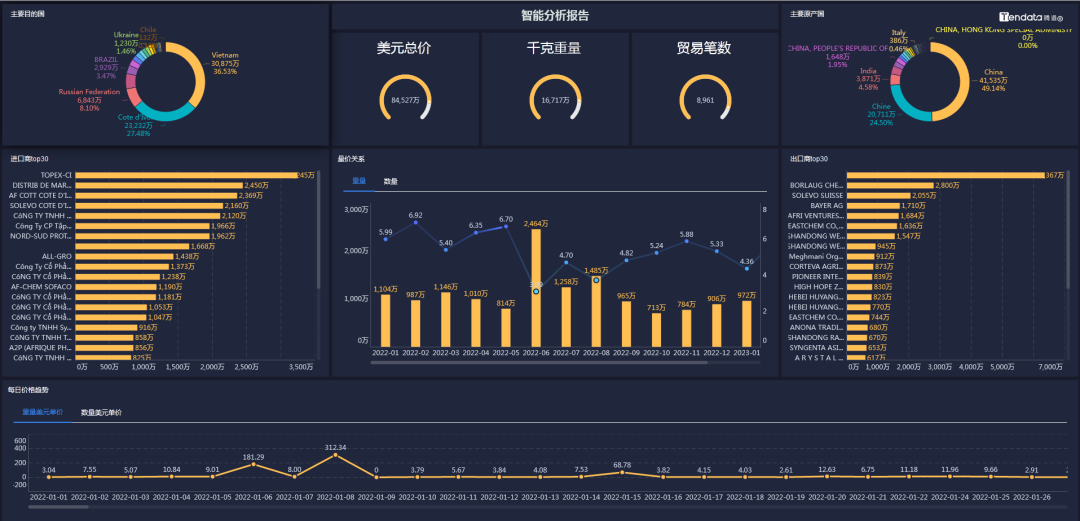 evo真人视讯外贸通能够一键查询和追踪某类产品的全球交易详情,并体现整个供应链的采购供应,最大程度展示整个贸易网的情况,基于交易数据的统计分析,多维度分析行业、产品市场趋势,助力企业洞察市场变化、把握不同市场采购淡旺季,从而准确定位目标市场。