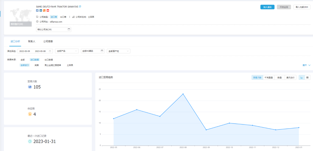 evo真人视讯外贸通可以清晰分析潜在客户的采购时间、采购对象、采购数量、采购价格、采购频率、采购关系,精准刻画客户画像,为开发和跟进客户给予决策依据。