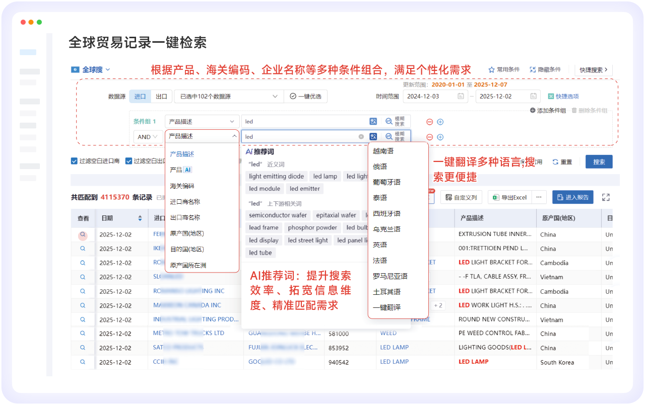 • 全球贸易记录一键检索